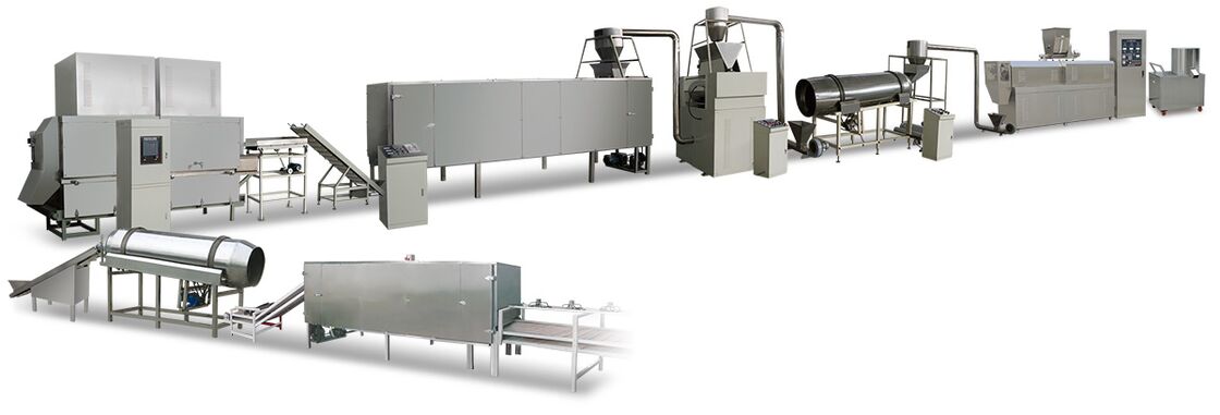 Mixer--Screw conveyor--Extruder--Air conveyor---Dryer--Flavoring